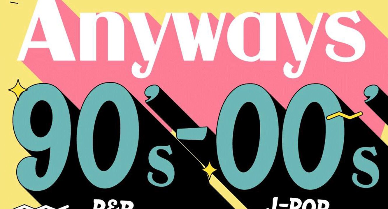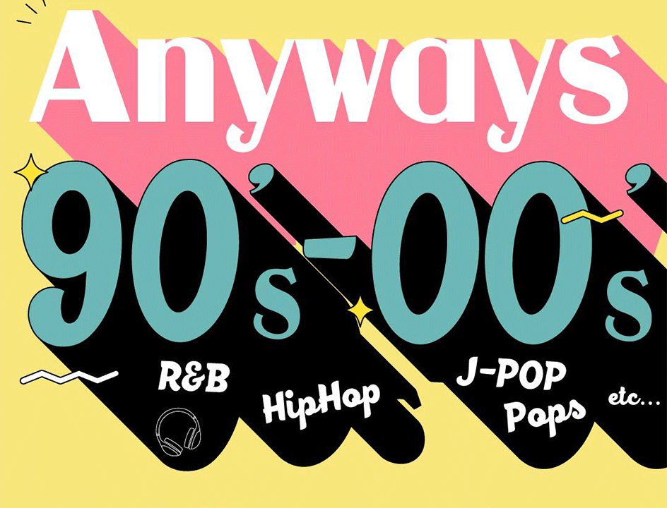 『Anyways 90’s〜00’s』 90〜00年代の音楽好き集まれ タイトルそのまま-とにかく90〜00年代-の音楽しか流れない土曜の夜♬ 当時クラブで遊んでいた方も、初めての方もぜひ クラブではないので、気軽に立ち寄れる空間。 しかも、イベントは22:30までなので、終電で帰れます。 ふらっと遊びに来てください。