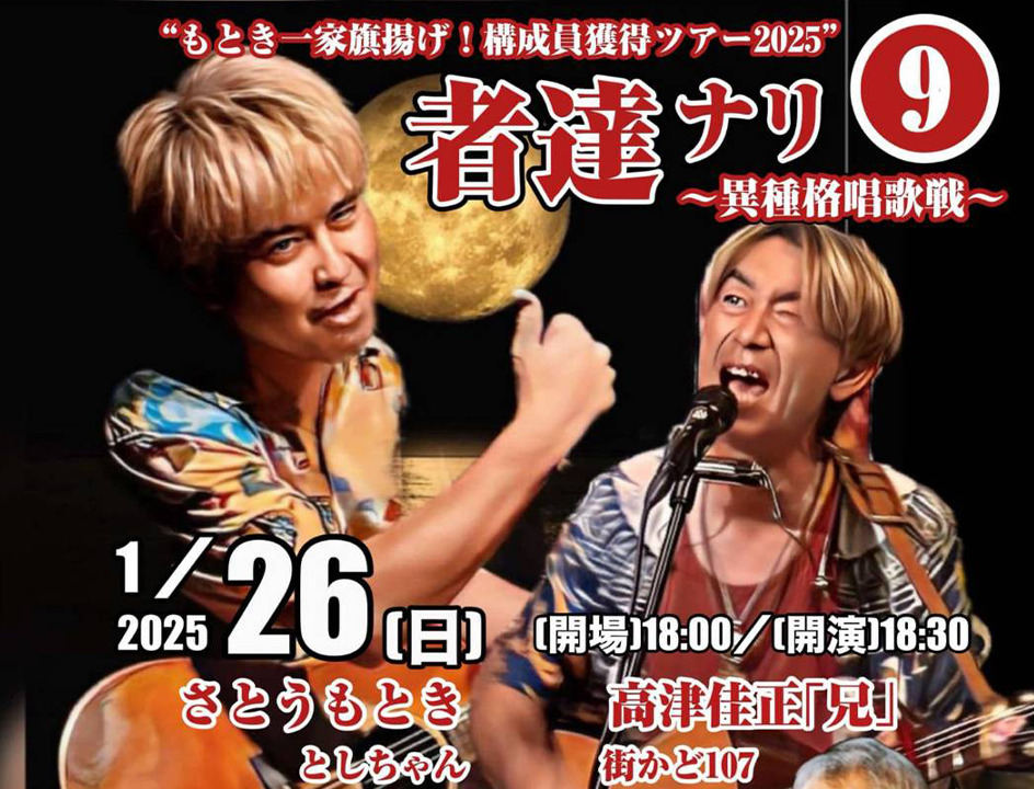 誕生日だったので良かったら・・・ 祝ってやって! HIKARU’s BIRTHDAY LIVE 2025~ 2025-10-19 SAVAGE vol.51 2025-10-18 生マレテ廻ル 2025-10-13 法橋ハジメ 【慣れてゆくこと】発売ライブ 『歌弦の月』 2025-10-13 RiN 10th.Anniversary 『DANCE』 2025-10-12 GAM WOOD WORK 10TH ANNIVERSARY PARTY いつものgam wood workとは違う特別な一日 2025-10-11 絶 輪 2025-10-07 ナベジ9thアルバム 『No.9』リリースツアー 【秋の東海】@豊橋 2025-09-26